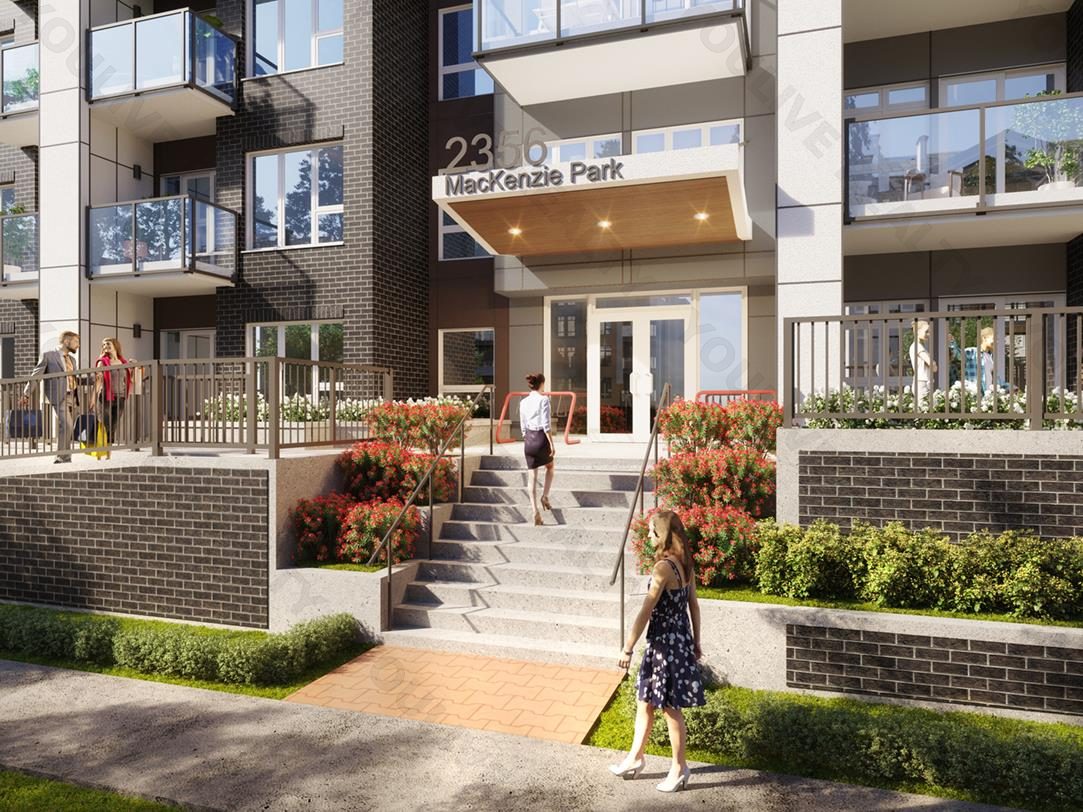 The Marquess of Lorne is a mixed-use strata development comprised of two six-story buildings constructed in separate phases. The smaller building, The Marquess West, will be built first. The Marquess West contains 10 one-bedroom and 17 two-bedroom residential suites along with 3,499 sf of commercial space. All residential suites, excluding Plan J, include a den. The buildings are constructed with two levels of concrete parkade, a main floor of steel and concrete topped with a suspended concrete slab. Above this slab are five levels of residential wood frame construction.