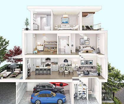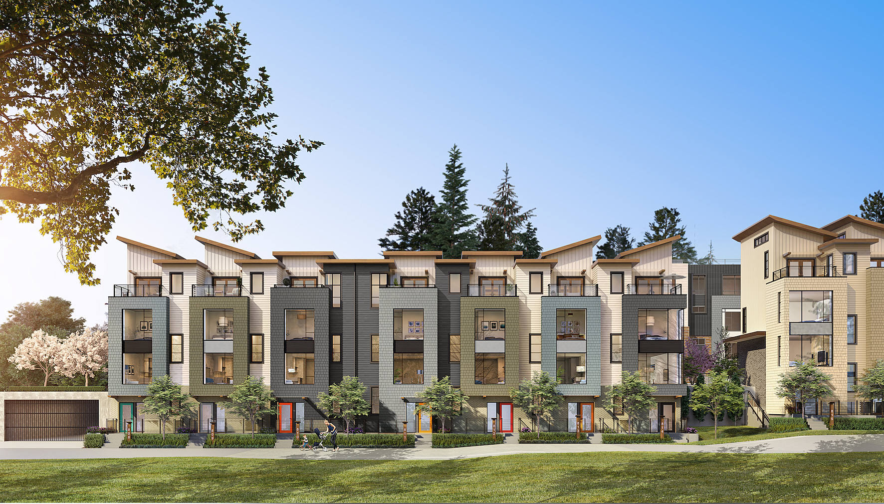 The Trails is a 4-story townhouse development featuring 2-3.5 bedroom units. Cotemporary craftsman architectural style using transitional materials such as weathered brick, heavy timber, and shingles complements the history of the neighbourhood.